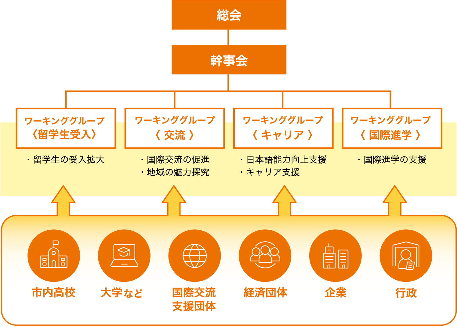 グローバルな視点を備えた国際⼈材の地域での育成・確保、多⽂化共⽣社会の実現を図ることを⽬的としています。
