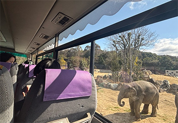 2月28日、企業一日訪問として、姫路市内の高校生20名が「セントラルパーク」を訪問しました。当日はセントラパーク到着後、サファリバスで動物を見学しながら、動物飼育員の方から仕事のやりがいや苦労していること、学生のうちにやっておいた方がよいことを聞きました。その後、遊園地に移動し、遊園地担当の社員の方からも仕事のやりがいや苦労を聞いた後、新しい乗り物「ヴィーナスGP」を体験しました。
